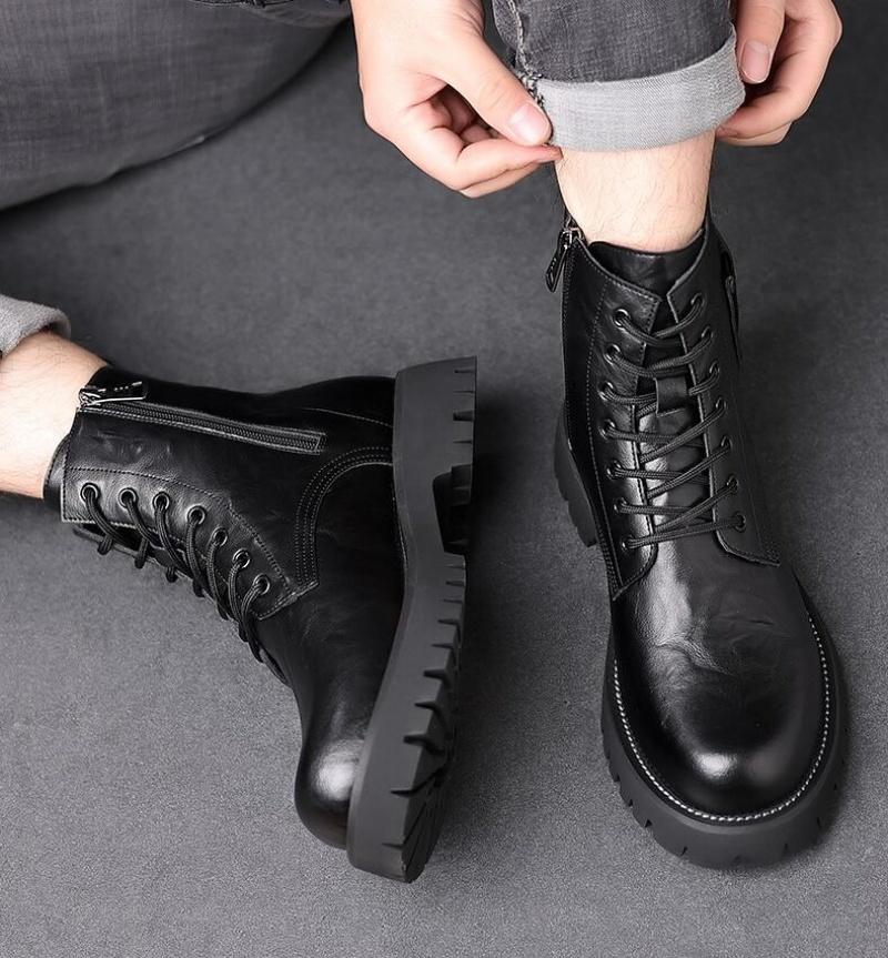 Neue Arbeitsstiefel für Herren des Designers, hübsche Motorradstiefel, Bergsteigerstiefel mit dicker Sohle, kurze Herrenstiefel aus echtem Leder