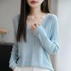 2025 Herbst V-Ausschnitt Feinstrick-Cardigan - Unifarben, Einreihig, Langarm-Oberbekleidung