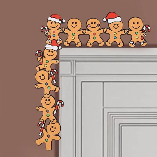 Weihnachts-Türschmuck Niedlicher Cartoon Schneemann Weihnachtsmann Rentier Lebkuchen Türrahmen Deko Holz Heim Wand Eckschild für Wand Schrank Regal