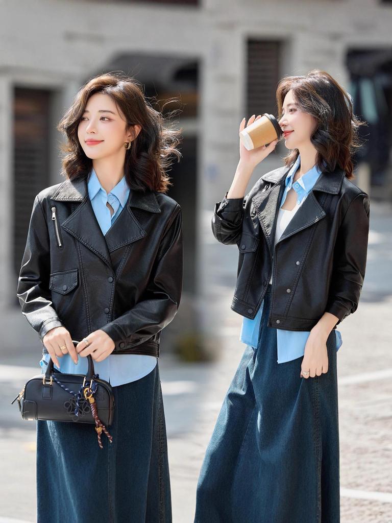 Wir präsentieren unsere elegante Slim-Fit Lammlederjacke aus der hochwertigen Frühlings- und Herbstkollektion. Diese Jacke ist sorgfältig aus echtem Leder gefertigt und bietet sowohl Luxus als auch Langlebigkeit.. Es verfügt über einen raffinierten Reverskragen und lange Ärmel, die zeitlosen Stil ausstrahlen.. Das Design wird durch funktionelle Taschen aufgewertet, die Praktikabilität mit einer schicken Ästhetik verbinden.. Perfekt auf Frauen zugeschnitten, vereint diese Jacke mühelos Eleganz und Komfort und ist somit eine ideale Wahl für Übergangszeiten.