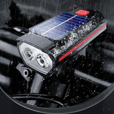 Solarlicht Fahrradlampe vorne mit Hupe USB Wiederaufladbar Leistungsanzeige Fahrradtaschenlampe Scheinwerfer