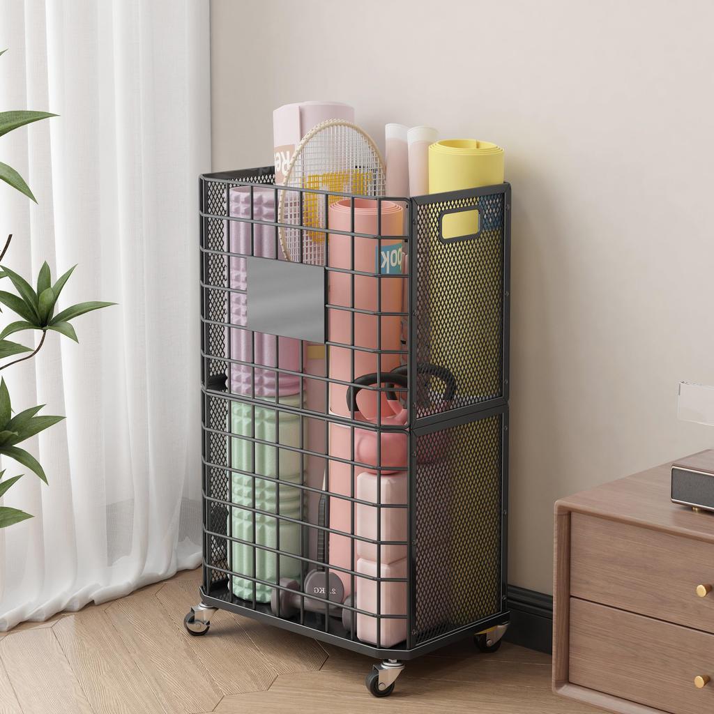 Ornestia Yoga-Matten-Aufbewahrung Wäschekorb mit Home-Gym Metall-Wäschekorb mit großer Kapazität Wäscheaufbewahrung B x 26cm T x Ablage, Rollen, Aufbewahrung,