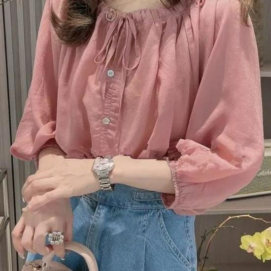 Schickes Dreiviertelarm-Puffärmel-Chiffonhemd für Damen - Stilvolles Sommer-Französisches Design