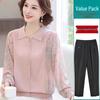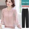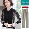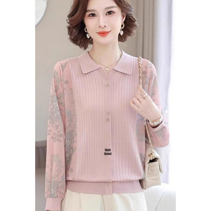 Dieses Damen-Langarm-Strick-T-Shirt ist eine stilvolle und bequeme Ergänzung für Ihre Garderobe und wurde speziell für Mütter mittleren Alters und ältere Mütter entworfen.. Gefertigt aus einem weichen Strickmaterial, bietet es eine dünne Wärmeschicht und gewährleistet gleichzeitig Atmungsaktivität.. Der lockere Schnitt bietet entspannten Tragekomfort für den ganzen Tag, und der elegante Umlegekragen verleiht einen Hauch von Raffinesse.. Einzigartige Gazeärmel mit wunderschönen Patchwork- und Quiltverzierungen verleihen diesem zeitlosen Stück eine unverwechselbare, moderne Note.. Perfekt für jeden ungezwungenen Ausflug oder jede Familienfeier.