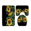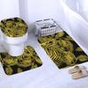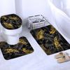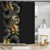 Black and Gold Tropical Plant Palm Leaf Bathroom Shower Curtain Set for Bathtub Exotic Leaves Bath Mats Rugs Toilet Home Decor