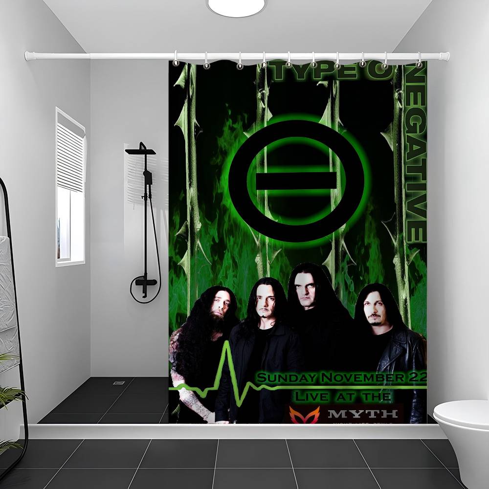 Rock Band T-Type O N-Negative Polyester Shower Curtain Waterproof Rust Resistant Grommet Easy Care Wipe Clean Durable