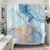 Blau Gold Texturierte Marmor Duschvorhang Schwarz Weiß Natur Kunst Muster Polyester Stoff Waschbarer Duschvorhang Badezimmerdeko