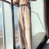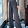 Damen Dicke Wollstrick High-Waist Weitbein Bodenlang Hose für Herbst/Winter
