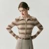 2025 Herbst/Winter Colorblock Gestreifter Slim-Fit Strick-Polo-Cardigan mit Reißverschluss