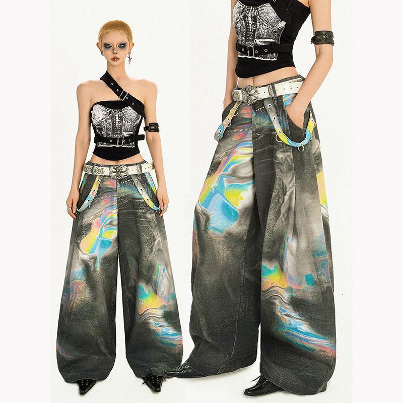Amerikanische Retro Wide-Leg Jeans: Vielseitige, locker sitzende Mode im High-Street-Stil