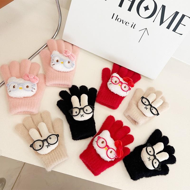 Neue Kinderhandschuhe Koreanisch Niedlich Cartoon Brille Fünffingerhandschuhe Warme Fingerhandschuhe für Jungen und Mädchen