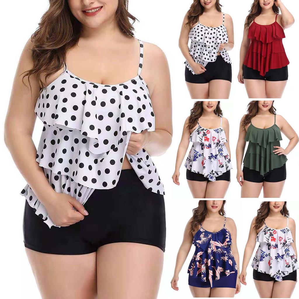 Women's Large Size Fashion High Waist Fly Side Straps Printed With Chest Pads Without Steel Bra Swimsuit