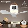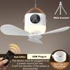 Camping-Deckenventilator mit Fernbedienung Abnehmbarer Outdoor-Zeltventilator USB-wiederaufladbar &Steckbar 4 Geschwindigkeiten Timer Hängende Ventilatoren Leuchten