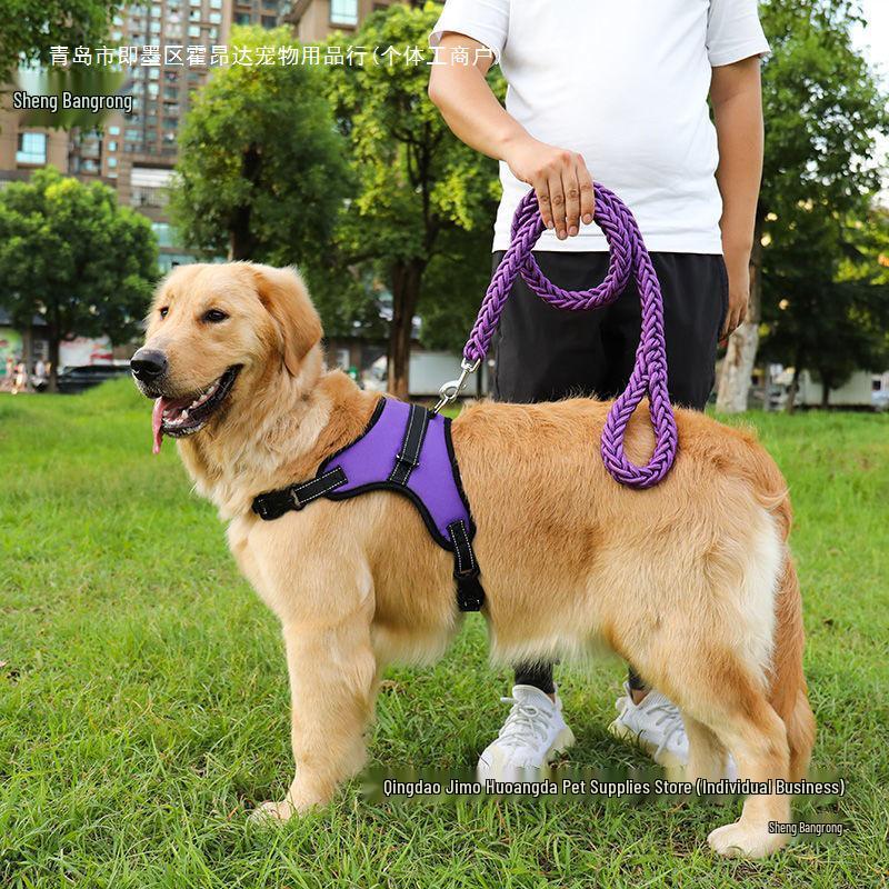 Golden Retriever & Labrador Medium-Large Dog Harness-Leash with Thick, Eight-Strand, Explosion-Proof Rope