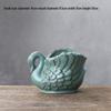 Vintage Green Swan Ceramic Flower Pot with Tray - Breathable Pottery for Orchids and Succulents