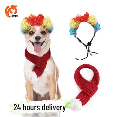 Haustier Weihnachten Gestrickter Schal & Cartoon Perücke Haaraccessoires für Katzen und Hunde