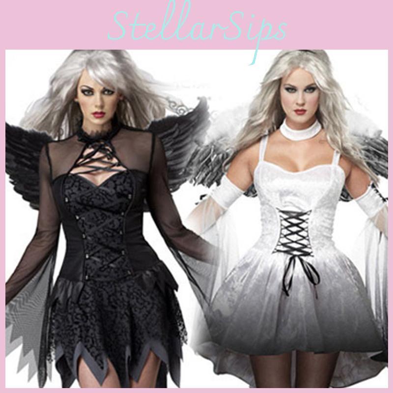 Dunkles Halloween Damen Engel Teufel Kostüm Kostüm Geisterbar Cosplay Party