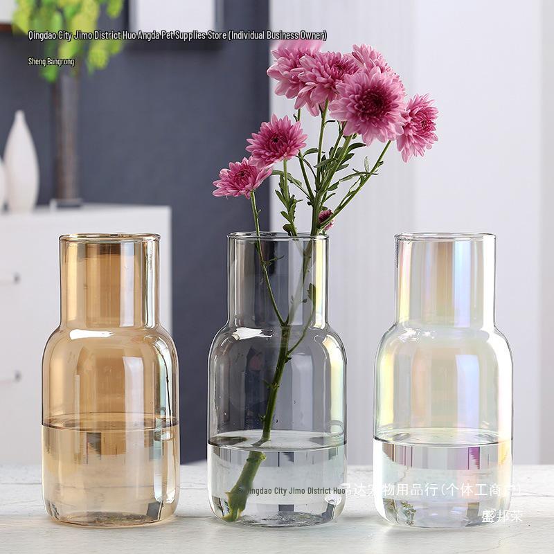 Transparent Minimalist Glass Vase for Office Decoration with Fresh or Dried Flowers