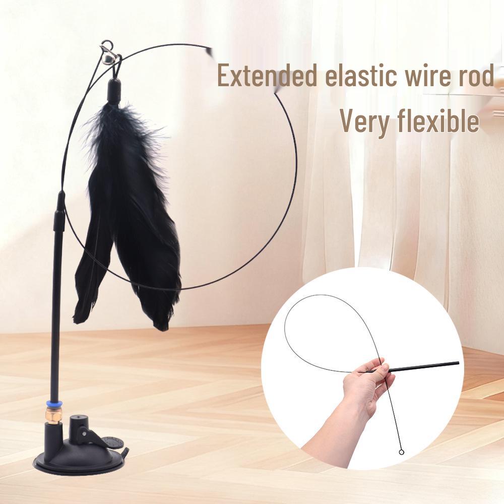 Katzen-Teaser-Spielzeug mit Glocke & Federn, Langeweile-Abbau, Starker Saugfuß & Langer Stab zum Selbstspielen