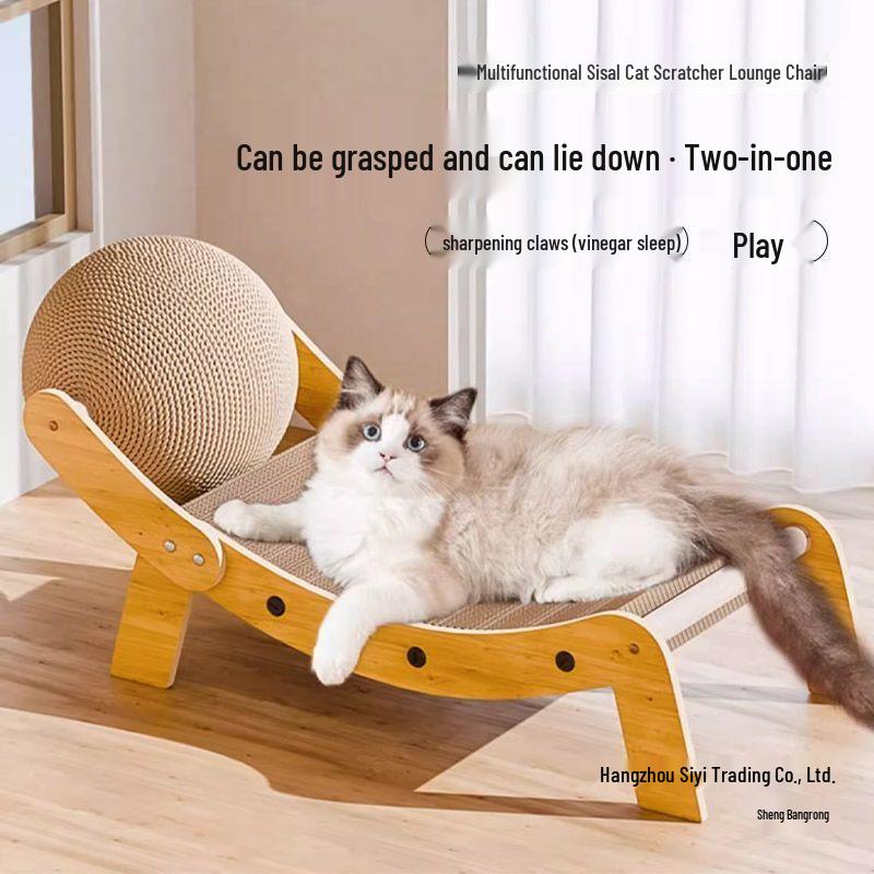 Sisal-Katzenbett & Kratzbaum-Kombination - Kratzfester Wellpappe-Liegesessel für Kätzchen