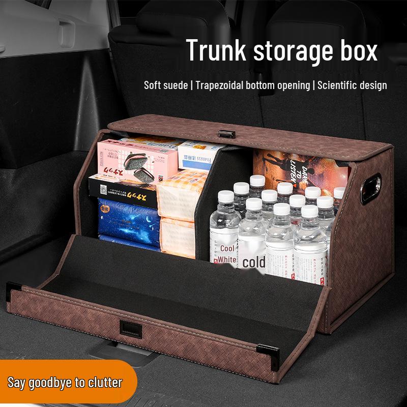 Großer Kofferraum-Organizer für das Auto, Leder mit Schafsfellmuster, Aufklappbares faltbares Design.