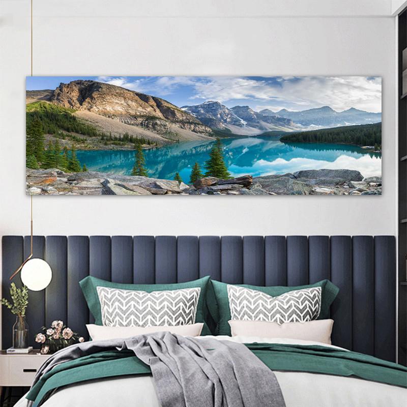 Bergsee Poster und Drucke Landschaft Leinwand Malerei Natur Baum Himmel Wand Kunst Bilder Wohnzimmer Home Decor kein Rahmen