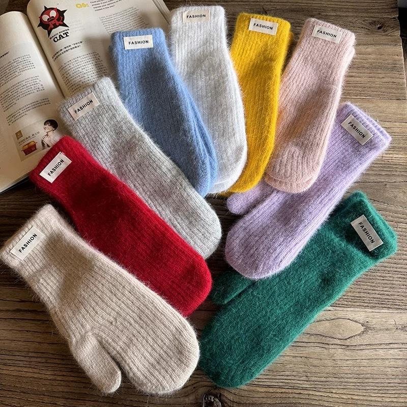 Einfarbige handgestrickte Wollhandschuhe für Damen im Winter Neuer Stil Plus Samt zum Warmhalten Winddicht und Kältefest Studentenreitertrend