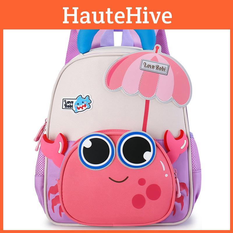 Kids Capacity Large Backpack With Cartoon Crab And Umbrella Decoration Daily For