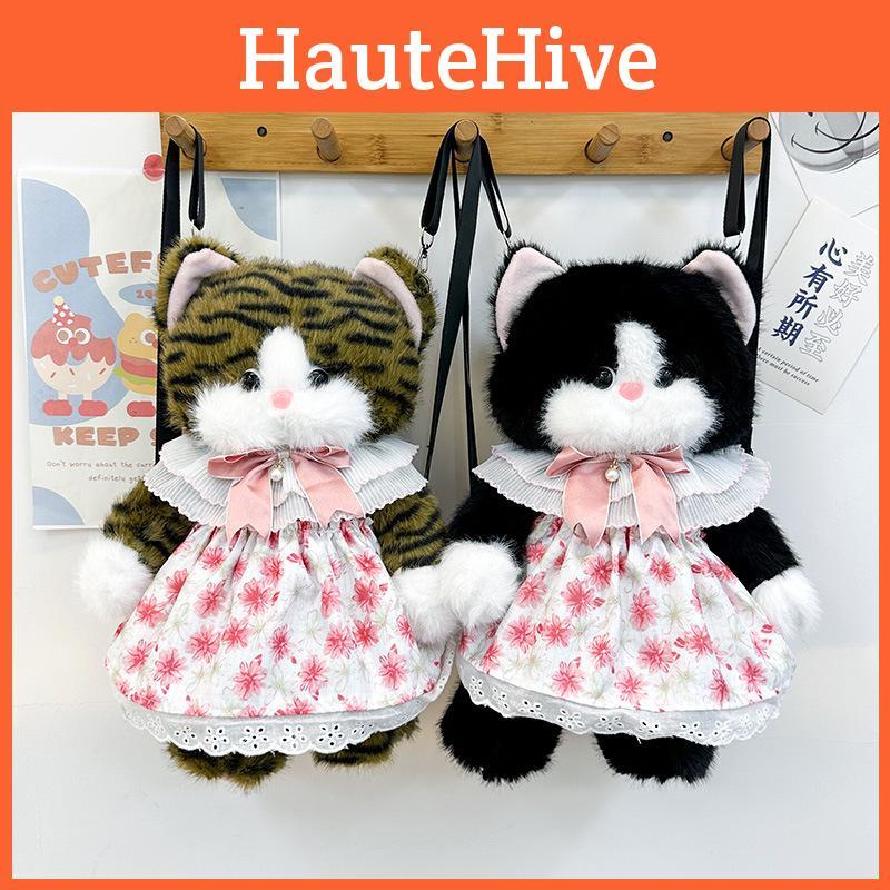 Pattern Tiger Cat Floral Skirt Plush Backpack Animal Adjustable Strap Shoulder