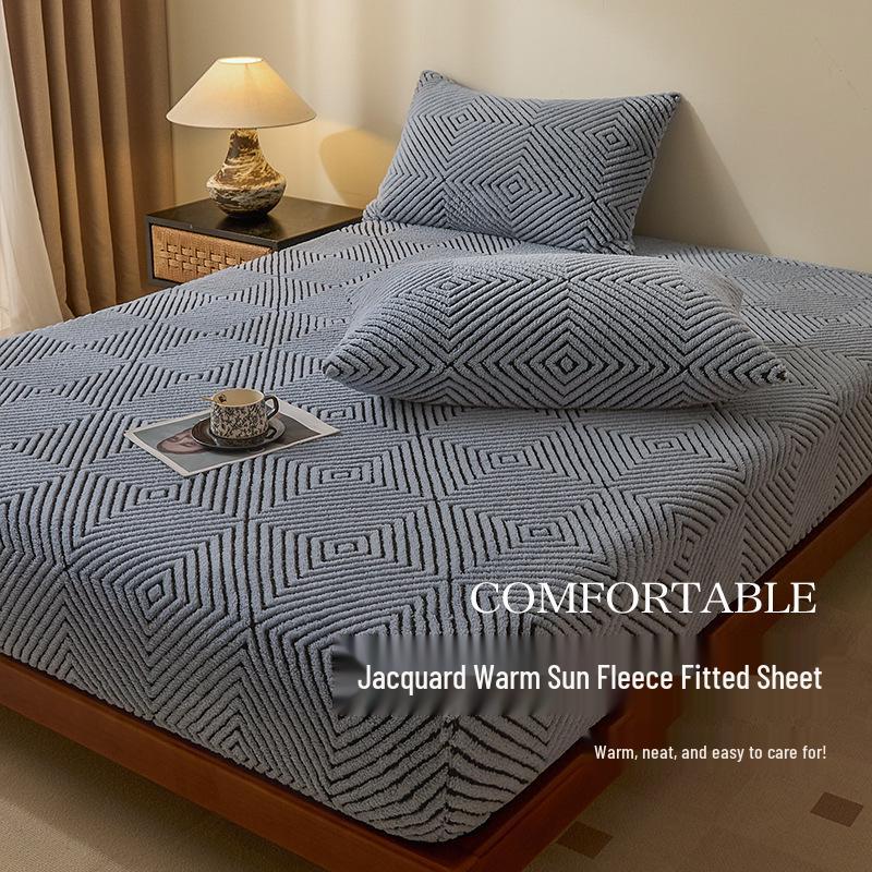 Jacquard Leichter Luxus Warme Sonne Fleece Spannbettlaken - Rutschfester Dicker Tagesdecke Matratzenschoner für Alle Jahreszeiten