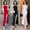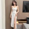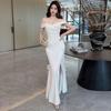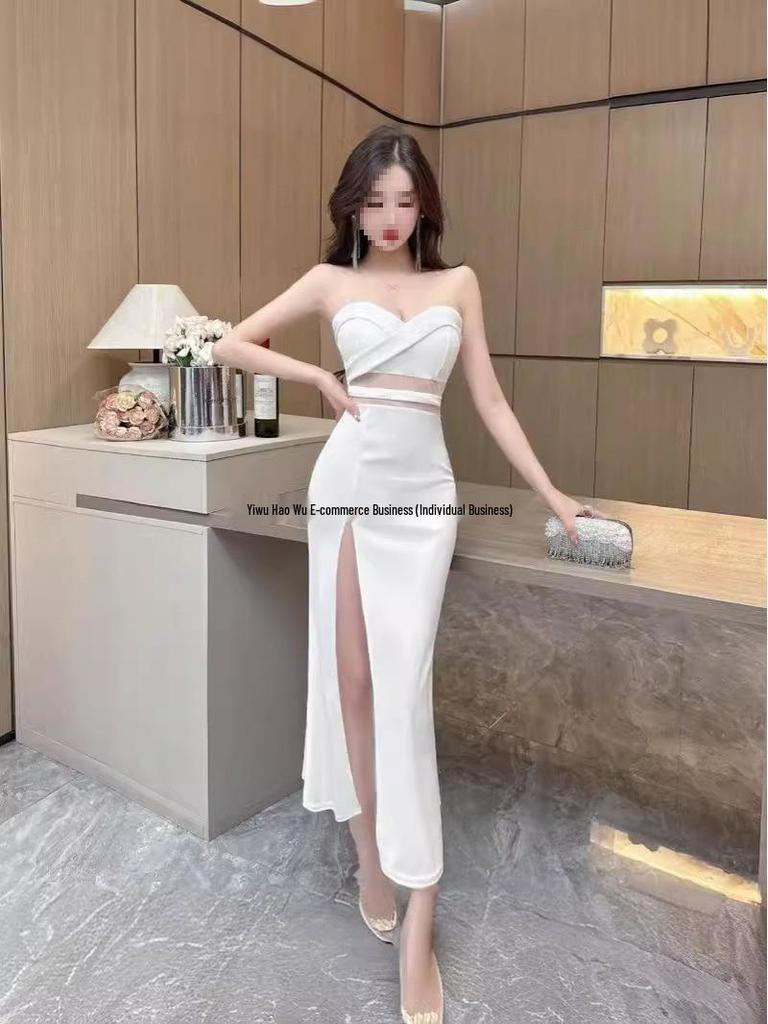 Sexy V-Ausschnitt Trägerloses Arbeits-Abendkleid - Figurschmeichelnder Schlitz Bodycon Langer Rock für Damen