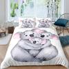 Koala-Bettwäsche-Set für Kinder, niedliches Tiermuster, Jungen und Mädchen, Regenbogen-Schmetterlings-Bettbezug, Blumenmuster