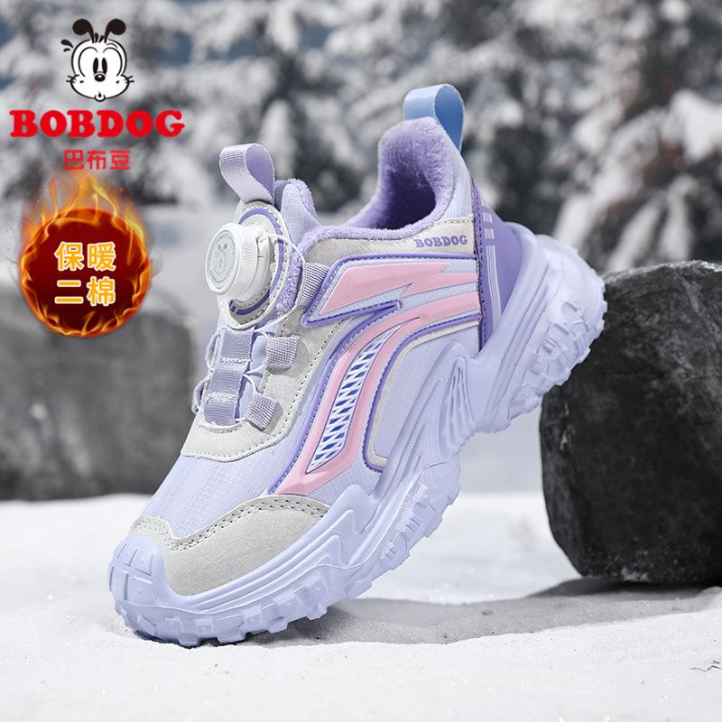 Babu bean girls shoes 2025 winter new children's leather velvet two cotton sports shoes medium and older children's casual shoes