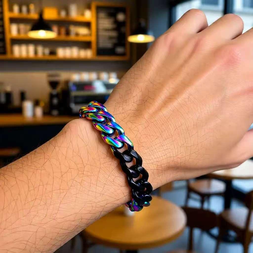 New 316L stainless steel black and iridescence dual Hip hop bracelet anklet