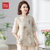 Paster Damenbluse im chinesischen Stil mit floralem Muster und 3/4-Ärmeln