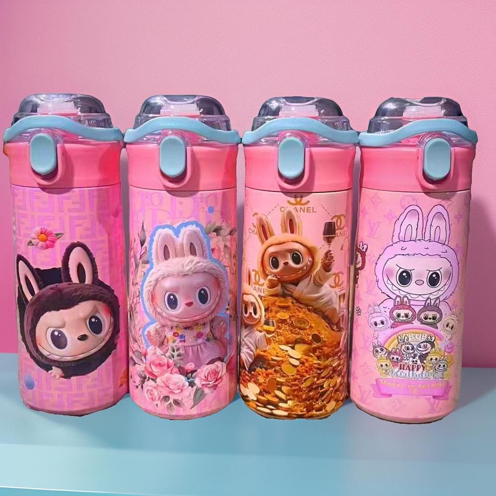 Hüpfbecher Thermobecher Hochwertig Niedlich Cartoon 3D Musterdruck Tragbarer Strohhalm Doppelwandiger Trinkbecher