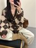 Argyle Strick Nerz Fleece Pullover Cardigan - Gemütliche Herbst-/Winterbekleidung