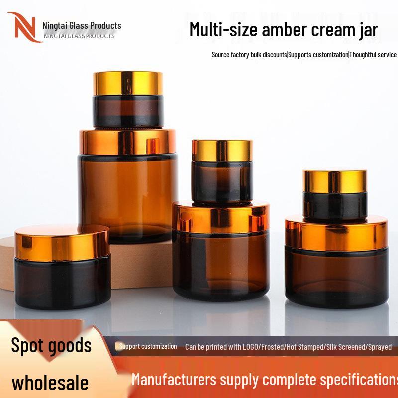 Braunes Glasauge und Gesichtscreme-Tiegel - Lichtgeschützt, Versiegelt, Verdickter Hautpflegebehälter.