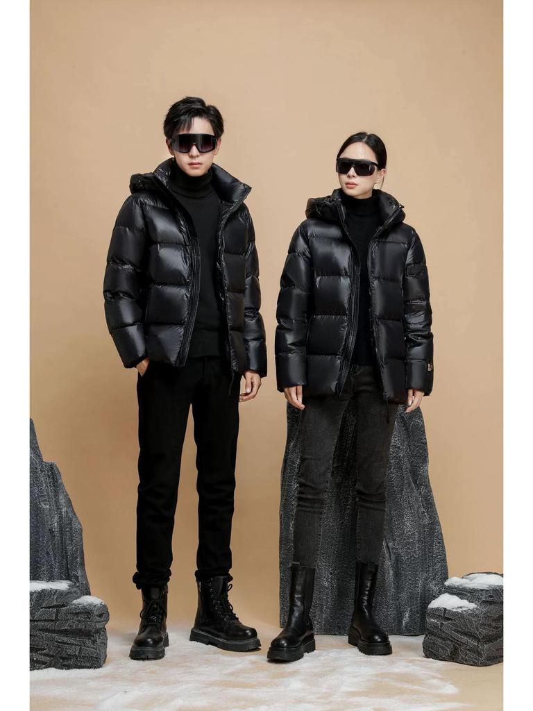 Bleiben Sie warm und stilvoll in diesem Herbst und Winter mit unserer Unisex Schwarzgoldenen Daunenjacke mit Kapuze.. Diese Jacke ist aus hochwertigem Nylonmaterial gefertigt und mit luxuriösen Gänsedaunen gefüllt, was ausgezeichnete Isolierung und Komfort bietet.. Seine lockere Passform sorgt für einen entspannten, lässigen Look, während der Kapuzenausschnitt zusätzliche Wärme und Schutz vor den Elementen bietet.. Mit langen Ärmeln und praktischen Taschen ist diese Jacke sowohl funktionell als auch modisch.. Entworfen in Übergröße und kurzer Länge, ist es perfekt zum Layering über Ihren Lieblingsoutfits. Dieses trendige, verdickte Stück ist sowohl für Männer als auch für Frauen geeignet und eine vielseitige Ergänzung für jede Garderobe.