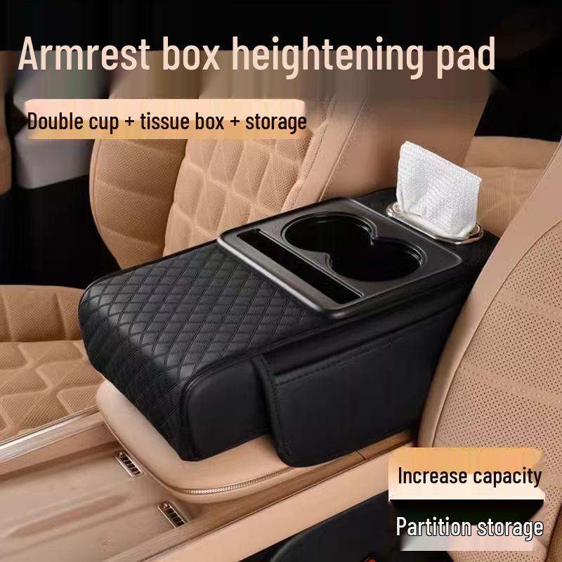 Auto Mittelarmlehnenbox Polster mit Höhenverstellung, Taschentuchbox Aufbewahrung und Getränkehalter