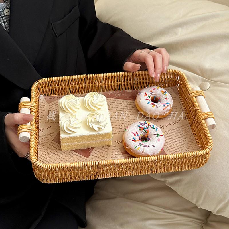 Handgeflochtenes Rattan-Tablett: Brot- und Obstkorb für Snacks und Nachmittagstee