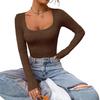 Europäisch & Amerikanisch Gerippter Rundhalsausschnitt Einfarbig Leuchtende Farbe Damen Frühling Crop Top Bodycon Langarm