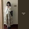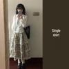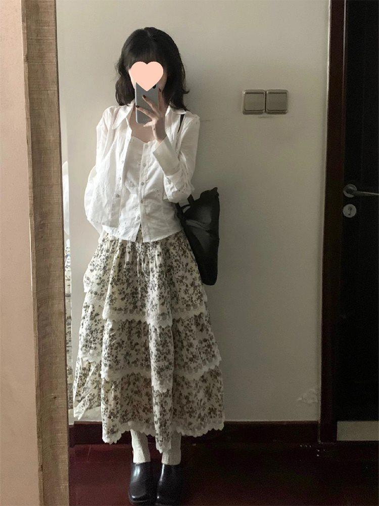 Vintage zweiteiliges Set mit floraler Stickerei: Französisches Lochmusterhemd & Midirock