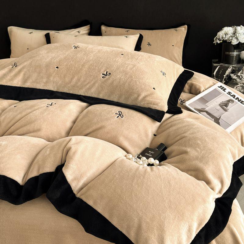 Verdicktes Samt Besticktes Baby Bettwäsche Set - Milchsamt Bettlaken, Bettbezug und Flanell Korallenfleece
