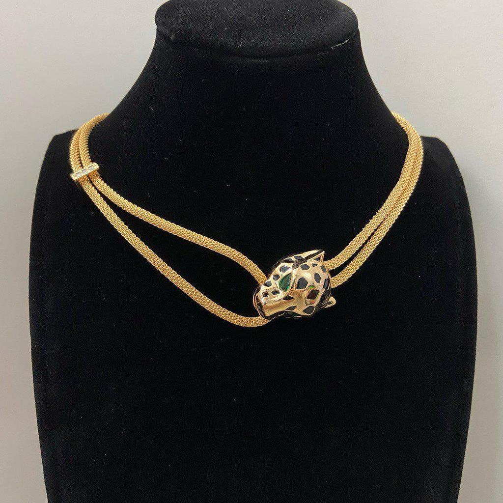 Ka Jia Seiko Übertriebene Leopardenkopf-Halskette mit Mikroeinlagen aus Gold