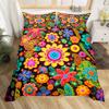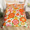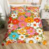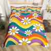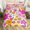 Vintage Groovy Blume Bettbezug Niedliches Regenbogen Schmetterling Bettwäsche Set Retro Floral Boho Rosa Bettdeckenbezug mit 2 Kissenbezügen