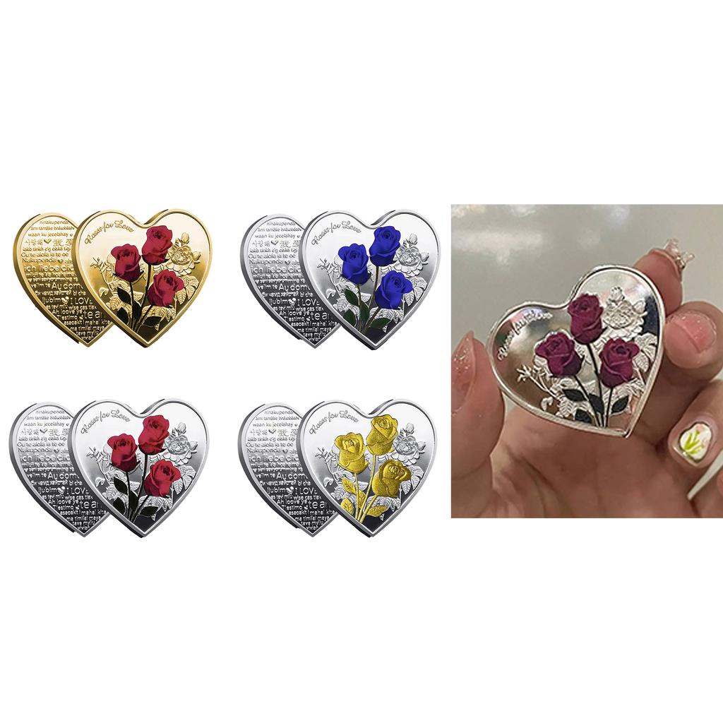 1 Stück herzförmige Rose-Metallmünze
