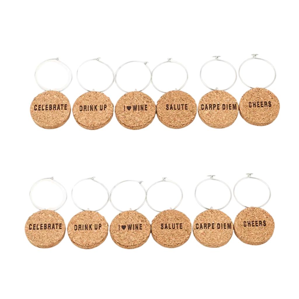 12 Stück Kork-Weinglasanhänger mit Ringen, Wein-Themen-Kelch-Getränkemarkierer, Etikett für Heimpartys, Festivalfeiern