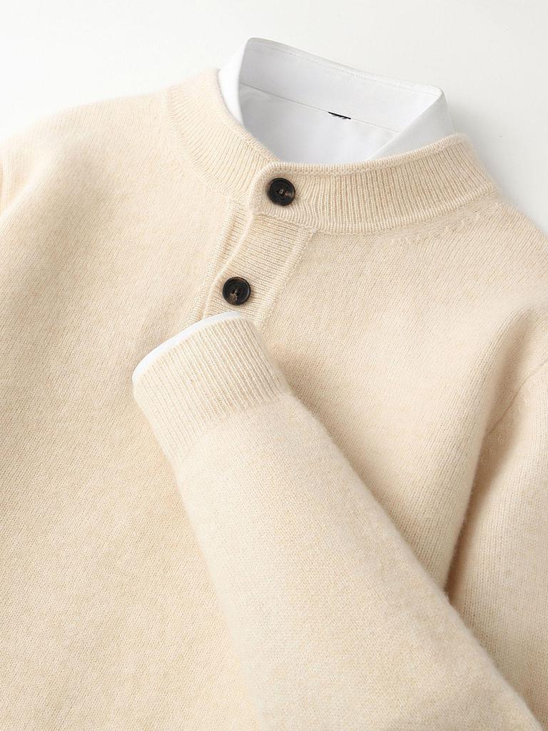 Bleiben Sie warm und stilvoll während der kälteren Monate mit diesem Herrenpullover, gefertigt aus hochwertiger Wolle für außergewöhnliche Wärme und Komfort.. Entworfen mit einer lockeren Passform und langen Ärmeln, bietet es ein entspanntes und gemütliches Tragegefühl und macht es perfekt zum Layering im Herbst und Winter.. Der klassische Henley-Ausschnitt verleiht einen Hauch zeitlosen Stils, während die dicke Strickkonstruktion sowohl Langlebigkeit als auch Isolierung gegen kühles Wetter gewährleistet.. Ideal für ungezwungene Ausflüge oder zum Entspannen zu Hause, ist dieser Pullover eine vielseitige Ergänzung für Ihre Kaltwettergarderobe.