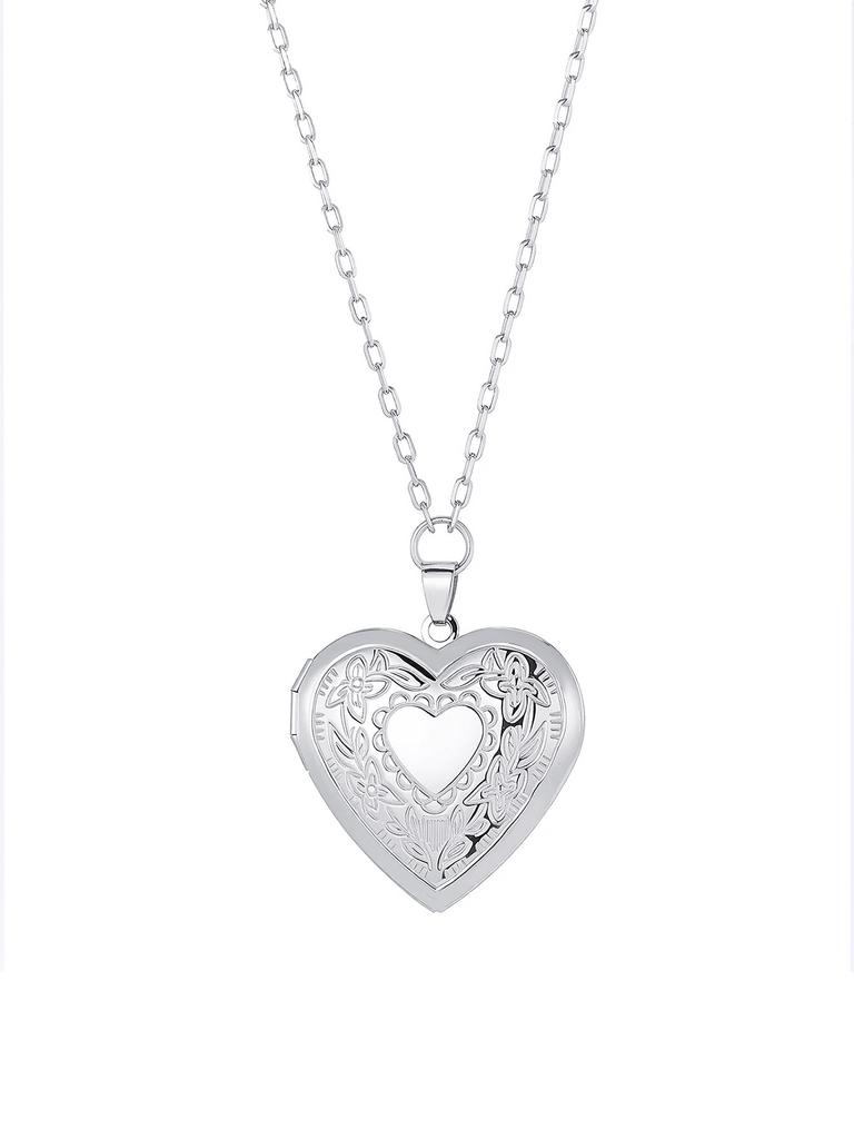 1 PC Heart Locket Necklace For Women, Zinc Alloy Engraved Floral Photo Locket Pendant Necklace, Vintage Keepsake Jewelry Gift For Mom